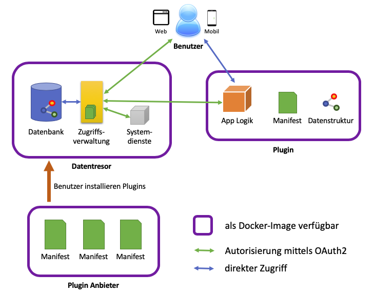 Um OwnYourData zu installieren und auszuführen ist Docker notwendig. Die Installation des Datentresors erfolgt auf der Commandline und erfordert folgende 5 Docker Images: