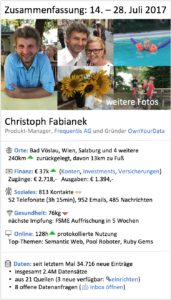 Als Ausblick für OwnYourData: ein solcher Knowledge Graph könnte mit den selbst gesammelten Daten dargestellt werden – siehe Kasten daneben. Falls du das spannend findest oder auch eigene Ideen für die Auswertung eigener Daten mit semantischer Annotation hast, schreib uns ein Email oder hinterlasse einen Kommentar unter diesem Artikel!